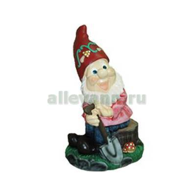 Фигура садовая ГНОМ С ЛОПАТКОЙ НА ПНЕ в Казани
