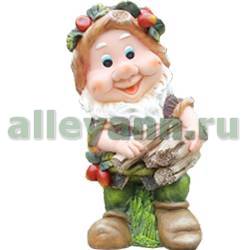 Фигура садовая ГНОМИК С ОХАПКОЙ ДРОВ И ЯГОДАМИ НА ШАПКЕ в Казани