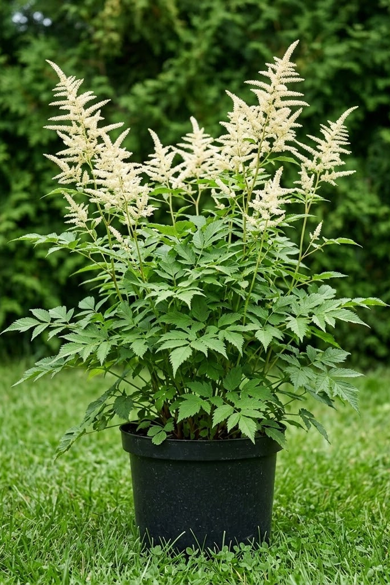 Травянистый многолетник, образует мощные заросли. Побеги прямостоячие или слегка отклонённые друг от друга. 40-60 см, макс. высота 2 м. Листья трижды рассечённые, перистые, зелёные. У отдельных листьев зазубренный край листа. Имеет Эффектные перистые метёлки сливочно-белые с приятным терпким запахом. Предпочитает влажные, богатые гумусом почвы. Зимостойкое до -34 С