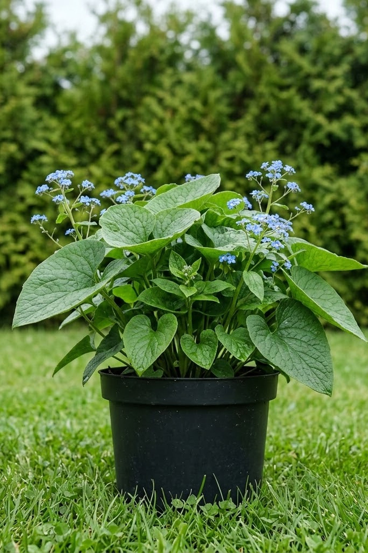 - Цветки темно-голубые с белым пятном в центре, внешне похожие на цветки незабудки