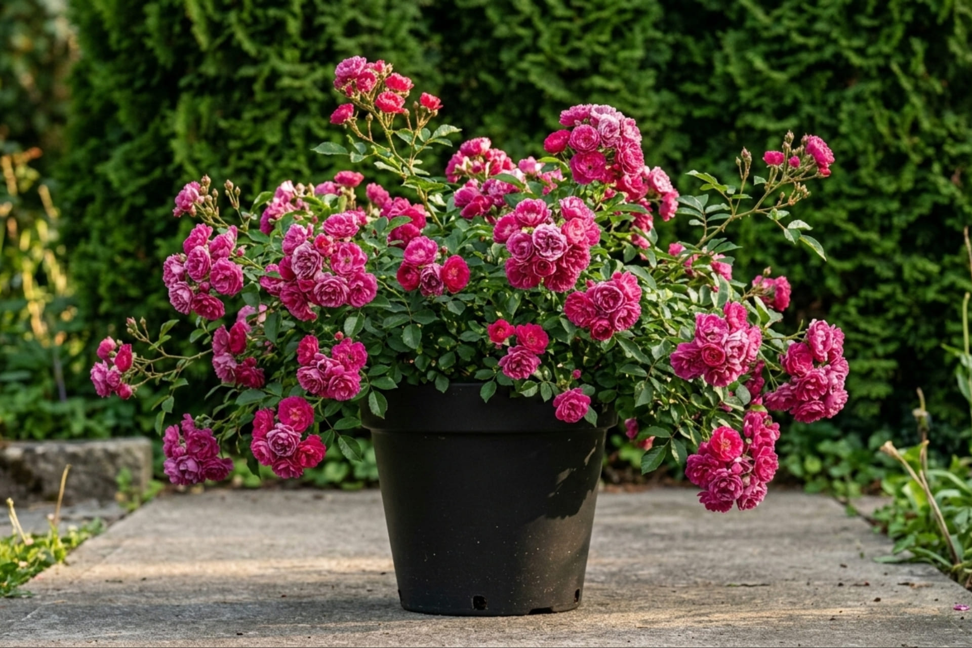 - цветы чашевидные, махровые, малиновые в начале цветения, на солнце выгорают до розового. Собраны в кисти по 10-20 шт.